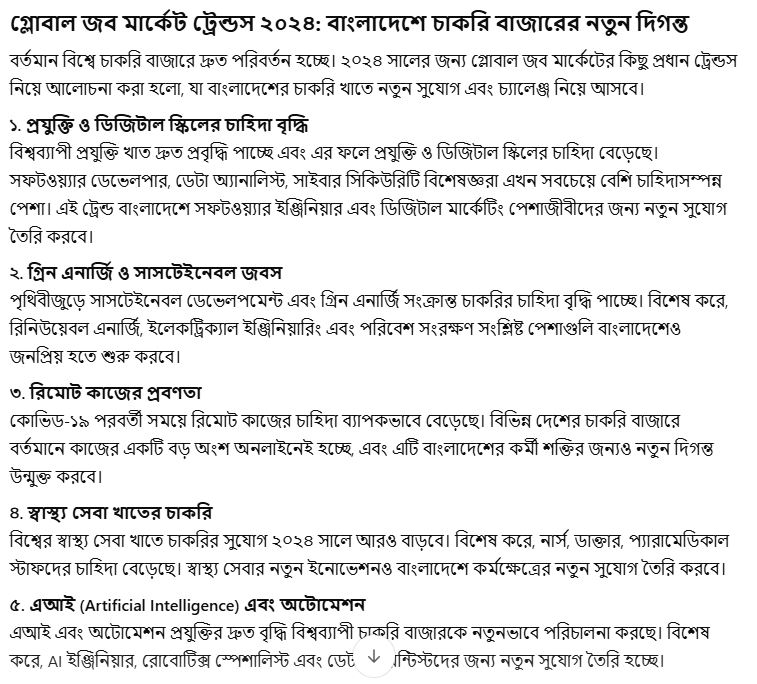 The global job market is experiencing rapid changes, and some key trends in 2024 are expected to open new doors of opportunities and challenges in Bangladesh’s job sector. Here’s a look at these global job market trends: