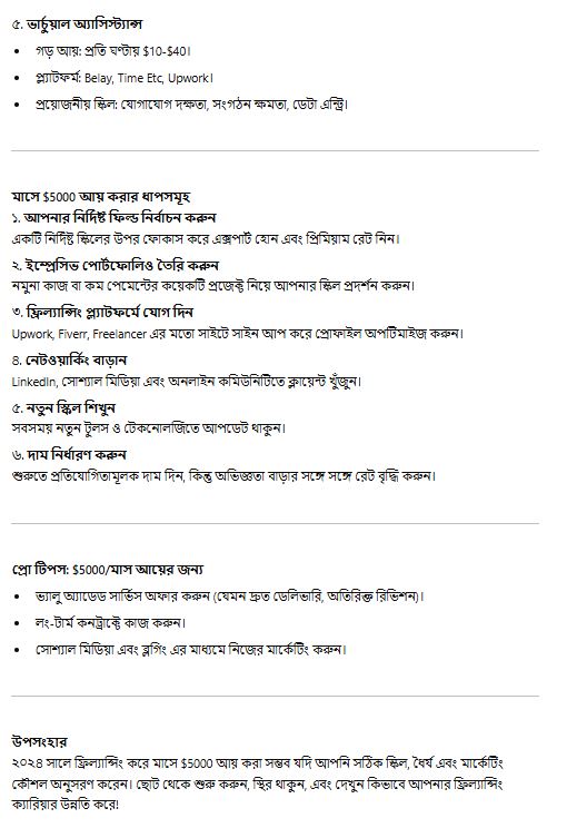 Earning $5000/month as a freelancer in 2024 is achievable with the right skills, persistence, and marketing strategy. Start small, stay consistent, and watch your freelancing career flourish!