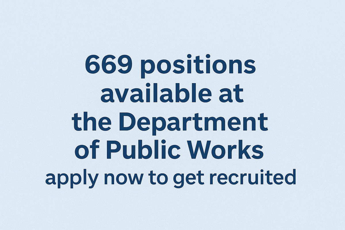 “669 positions available at the Department of Public Works, apply now to get recruited.”